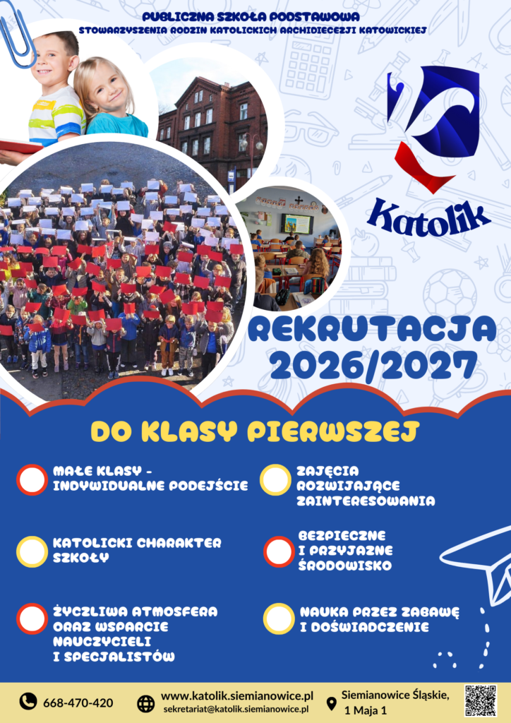 Zapraszamy do udziału w rekrutacji na rok szkolny 2026/2027.Nasza szkoła oferuje bezpieczne środowisko, przyjazną atmosferę oraz wszechstronny rozwój uczniów.
